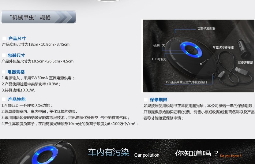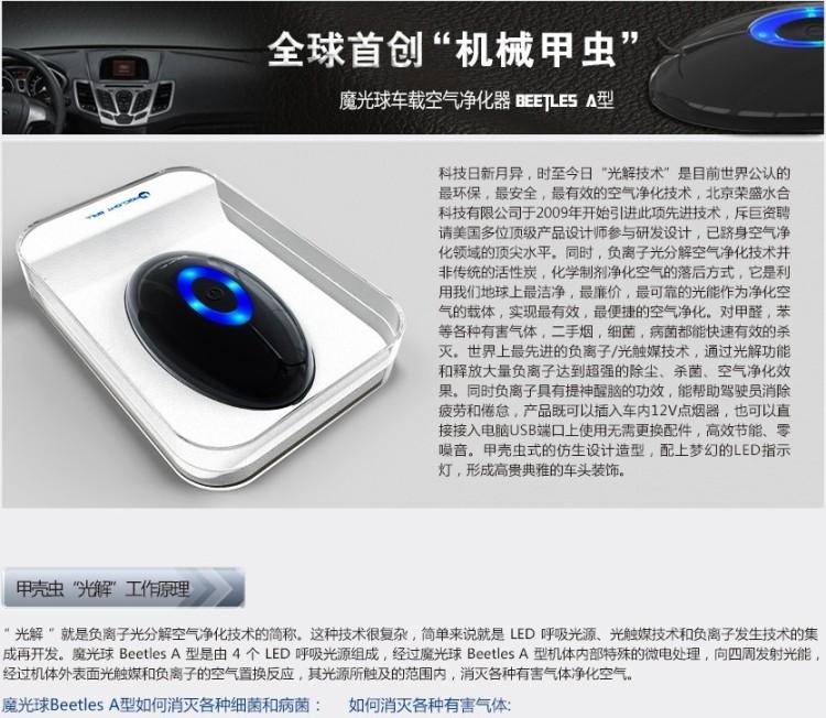 产品名称: 魔光球BEETLES A型车载空气净化器